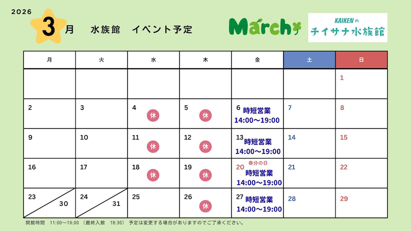 - 11/20(日)営業時間変更のお知らせ